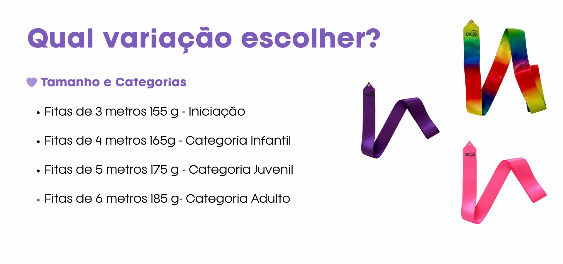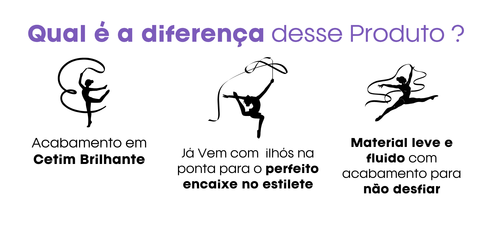 Com acabamento em cetim brilhante, proporciona um visual incrível durante os movimentos, realçando o traçado da fita no ar com brilho e suavidade.